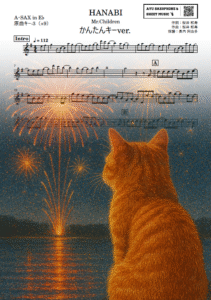 楽曲自体の難易度はそれほど高くありませんが、アルトサックスで演奏するとやや音域が高めになります。