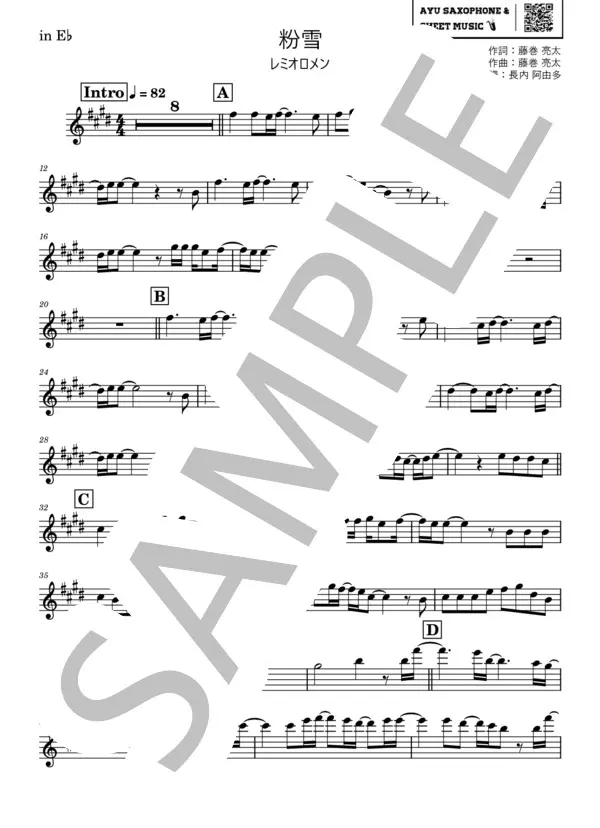粉雪/レミオロメン 楽譜|アルト・テナーサックス/フルート Sax/Flute/in C・E♭・B♭