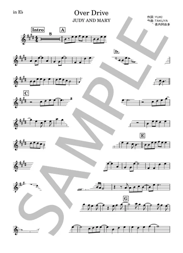 Over Drive/JUDY AND MARY 楽譜|アルト・テナーサックス/フルート Sax/Flute/in C・E♭・B♭