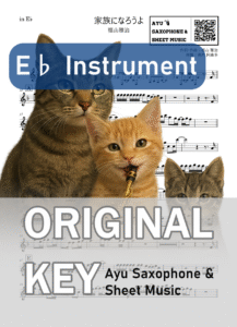 Sax(A.sax/T.sax)、Flute、Ocarina に対応しており、in C・E♭・B♭の移調譜をご用意しています。