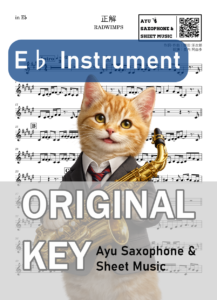 この曲は原曲キーのままだと管楽器では吹きにくい部分があるため、かんたんキーでの演奏がおすすめです。全体の音域が無理なく整理されており、フレーズの流れをつかみやすくなります。